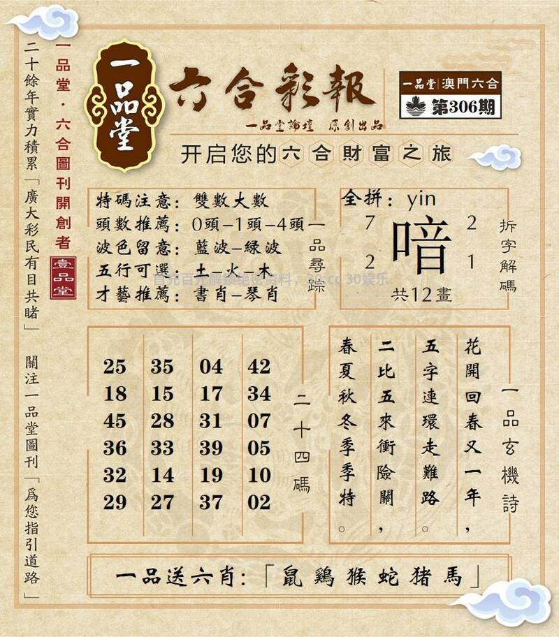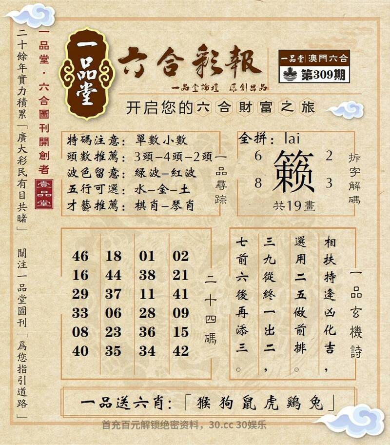 310期:百晓生网→【平特一肖】好资料